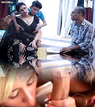 Miss Hot and Uber-sexy Teacher and Old Step Father trains his Virgin Son How to Nail 1st Time