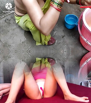 While the Desi stepmom washes boulder-holder & panties, step-mom took off the stepson's pants and Naked him, Then asks him to fuck her - Jizz