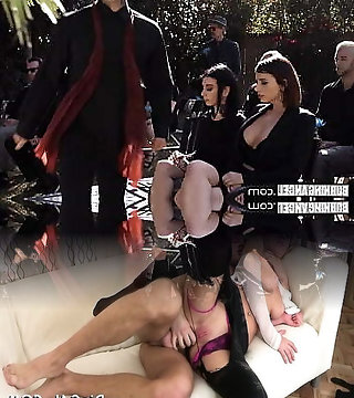 Leather Gothic Bride behind the chapel - Filthy Outdoor Oral Job Handjob with Leather Gloves - Jizz on my Boobies
