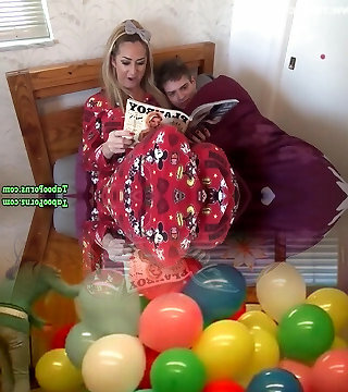 She fucks with her stepson! Blonde cougar lets the young guy speculum her slit!