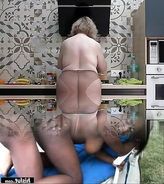 What do you want for breakfast: me or scrambled eggs? Curvy wife in nylon stocking. Huge-titted milf with big ass behind the gigs.
