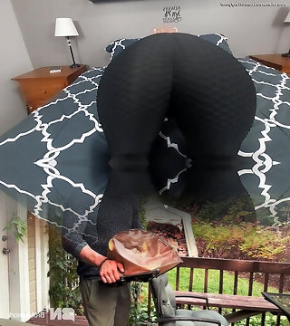 Rapid ride with butt buttplug that falls out when neighbour shoots a load. Unfortunately creampie can't be seen