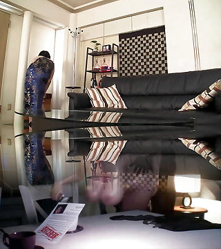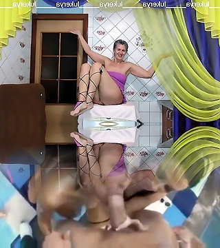 Red-hot housewife Lukerya enjoys to create erotic clothes with mesh in different colors, complements the outfit with a leg de