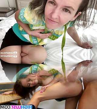 Dirty talking brunette uk milf blows her husband's cock, has doggystyle sex and a titty jizz flow.