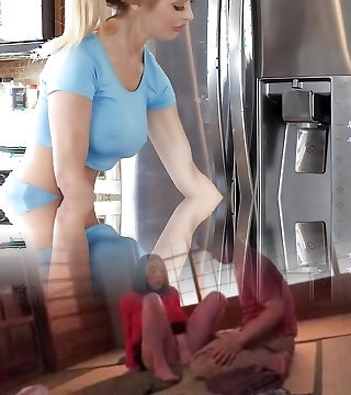 Fucked a beauty hard in the kitchen in black sexy lingerie in her hatch and cooch