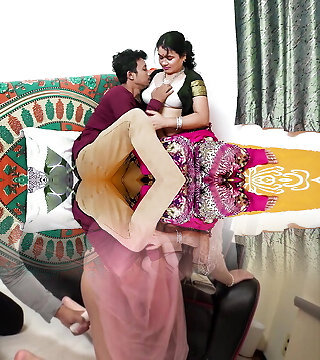I was watching porno flick on phone in bed room and holding penis in mitt Tamil aunty Bavana came in shocked I pulled her and ha