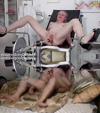 Cock hungry super-naughty mature slut enjoys running a fucking machine in her hatch before drilling pussy with the machine
