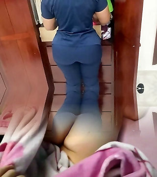 02:18Pale skin mature white lady looks fine from behind on web cam