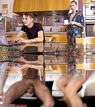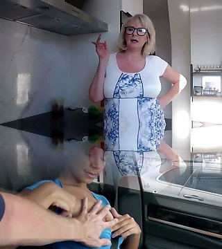 Chesty and Hot Step Mom Caught her Stepson Jacking and Helps Him