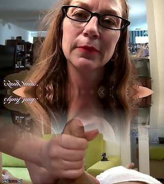 Sexy brunette mommy loves to stroke a dick until jizm starts dripping