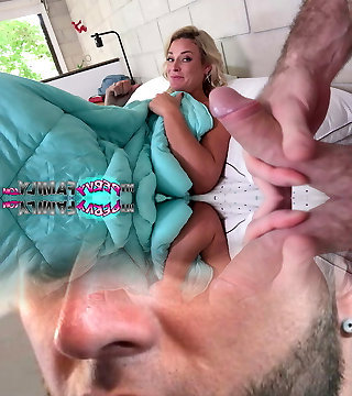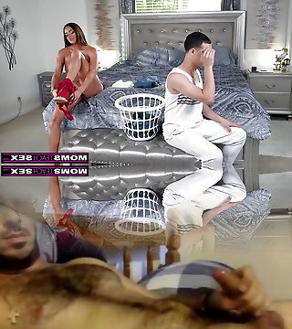 Stepson slinks into stepmom's sofa and surprise ravages her in the butt while dad is in the shower