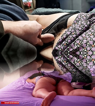 Hairy bisexous stepmom and stepson teasing and mutual masturbation