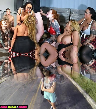 Three MILFs caught smoking suck a shaft
