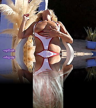 Sexy mature blonde shows me her monstrous tits while smoking