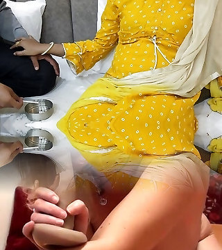 Stepmother seduces her stepson in the kitchen