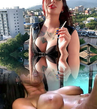 Smoking fetish. Dominatrix Nika entices you and smokes a ciggie sexually in front of the camera.