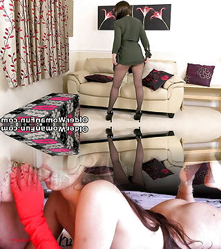 Mature brunette cougar stripteasing and seducing fresh cock and enjoying her pussy plumbed