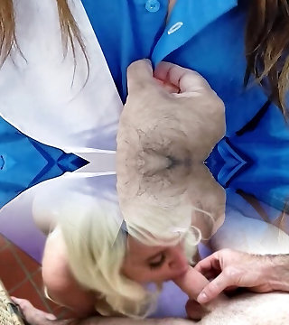 Light-haired Professor dons a paper bag, so that a guy can daydream getting sucked off by his girlfriend