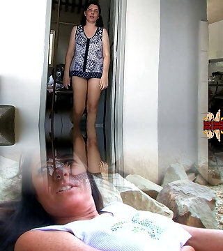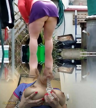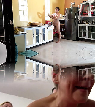 A bare housekeeper works in the kitchen. Depraved capricious housekeeper works in the kitchen without panties.2