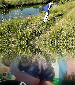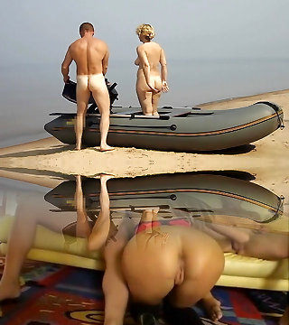 Nudist beach. Public nudity. Sexy MILF sans underpants and bra sunbathes naked is not shy about fisherman. Nude in public. Milf
